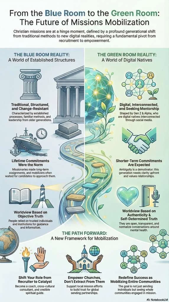 The infographic on the right was developed from Dr. Jolene Erlacher’s presentation on the future of missions mobilization.